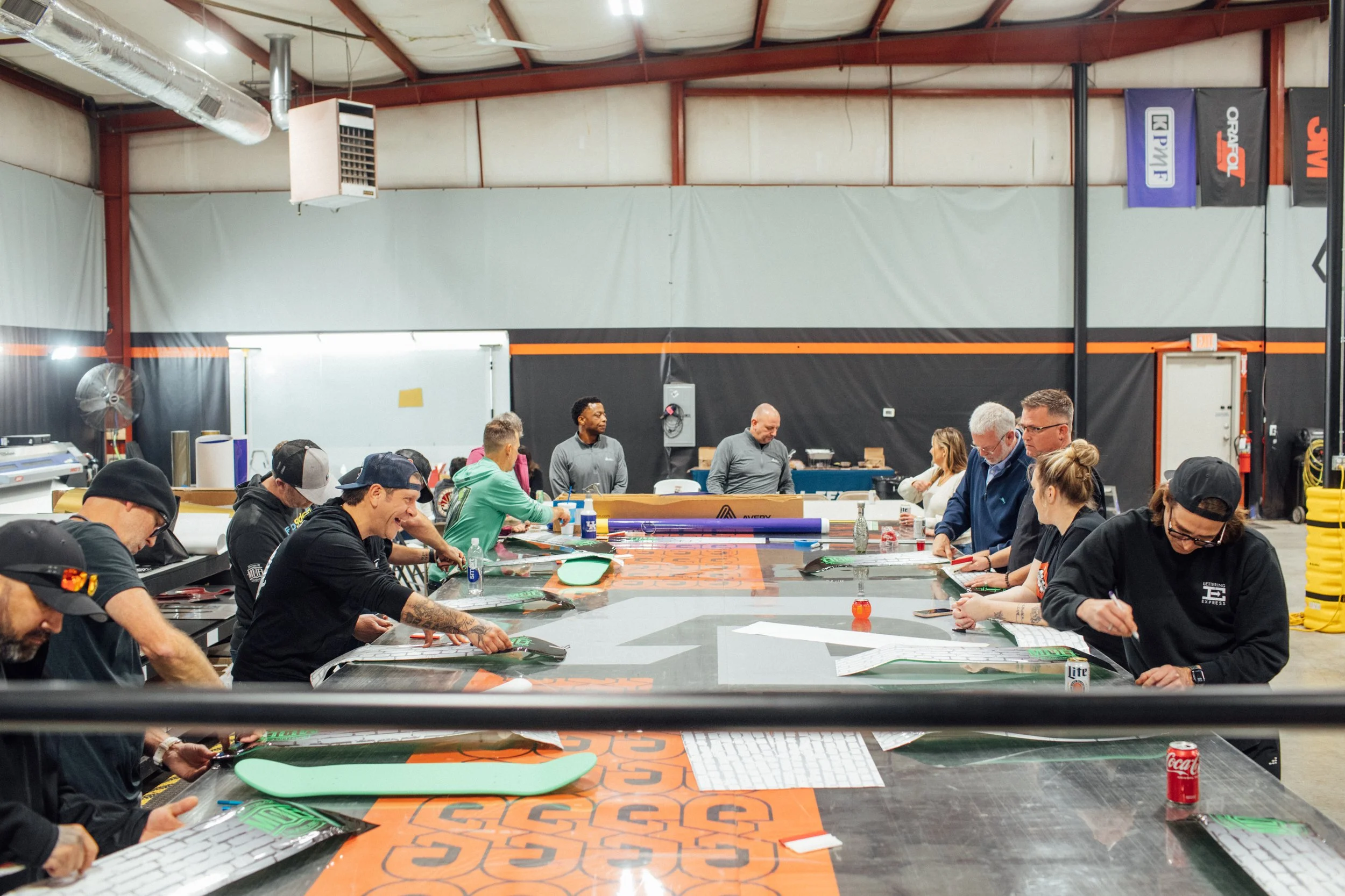 One of the highlights of the meeting was the hands-on collaboration with Avery Dennison, a global leader in vinyl wrap materials, pressure-sensitive adhesives, and commercial graphics films. During this session, members had the opportunity to test and evaluate new and emerging vinyl materials designed to improve durability, installation efficiency, and long-term performance for vehicle wraps, fleet graphics, architectural vinyl, and custom branding applications.